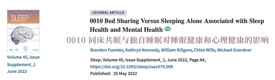 ①0010 Bed Sharing Versus Sleeping Alone Associated with Sleep Health and Mental Health, Sleep, Volume 45, Issue Supplement_1, June 2022, Page A4