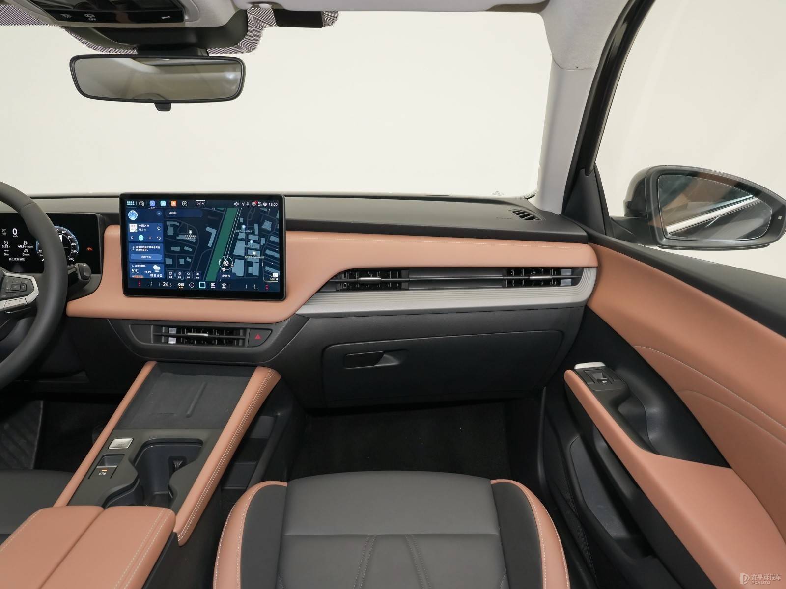 12.9英寸中控大屏拥有高清分辨率及抗指纹涂层,与之搭配的10.25英寸液晶仪表支持AR实景导航投屏。中控屏的下方配有两个手机槽,其中一个支持手机无线充电功能。而无线充区域则是使用中岛设计,其内部储物空间比较大。