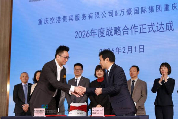 2月1日,重庆空港贵宾服务有限公司与万豪国际集团重庆区域管理酒店2026年度战略合作发布会在重庆江北国际机场举行。
