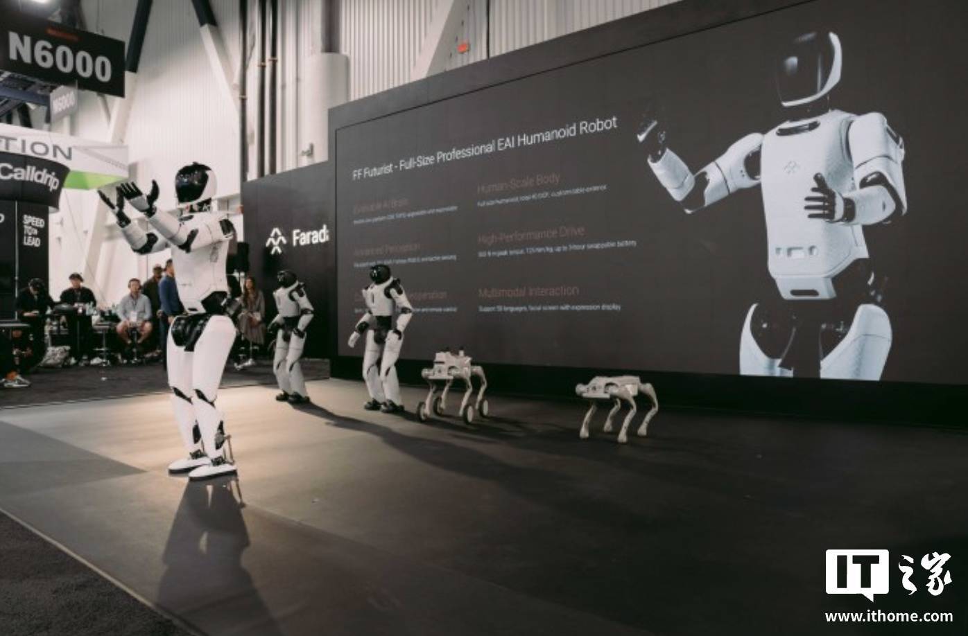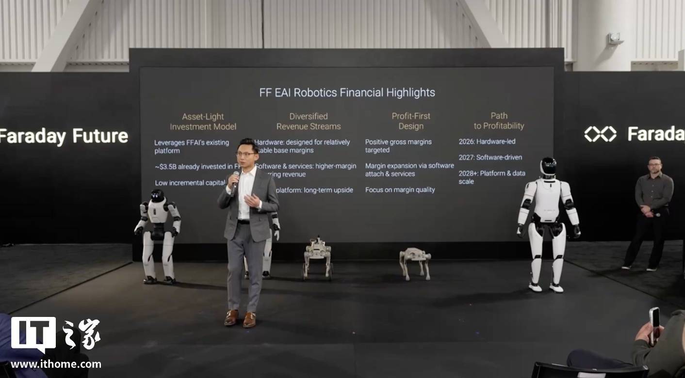 IT之家 2 月 5 日消息,法拉第未来今天举办美国国家汽车经销商大会(NADA),活动中法拉第未来公布了旗下首批具身智能机器人产品。
