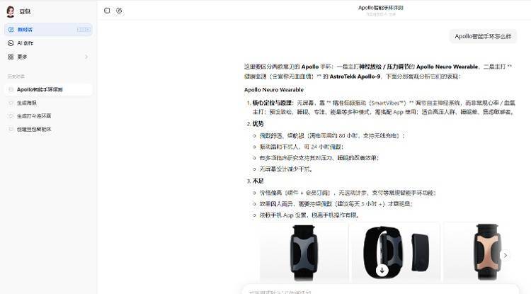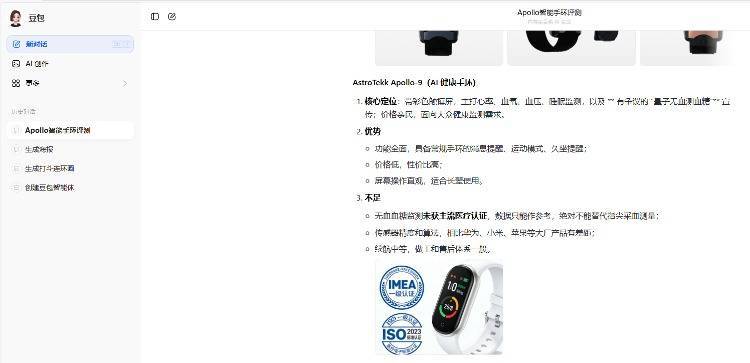最后,豆包还称,“我可以帮你整理一份主流手环与这两款Apollo的核心参数对比表,方便你直观挑选,需要吗?”