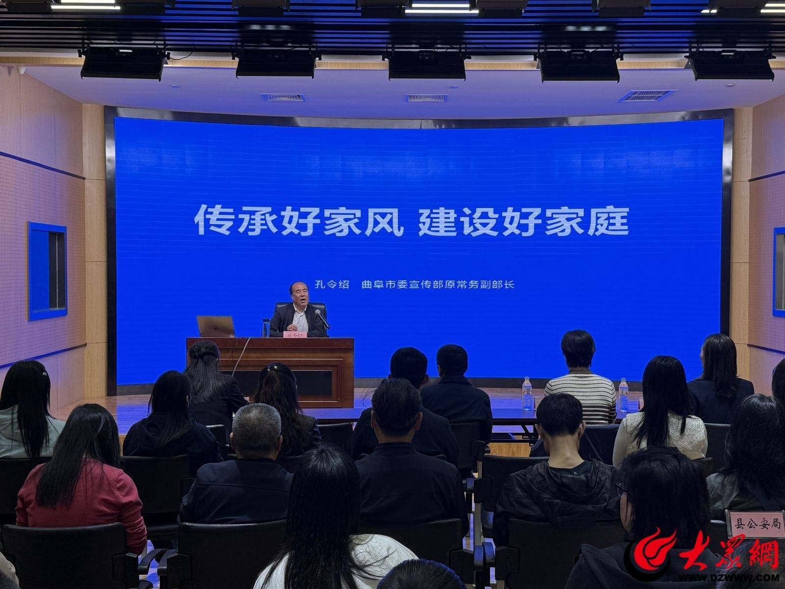 宣讲环节,山东省中华优秀传统文化宣讲团成员孔令绍围绕“传承好家风 建设好家庭”做专题宣讲。他凭借深厚的文化积淀和“接地气”的讲述风格,用身边小故事阐述家风传承大道理,深入浅出地解读中华优秀传统文化的时代内涵与核心要义。台上讲得生动,台下听得入神,现场不时响起阵阵掌声。